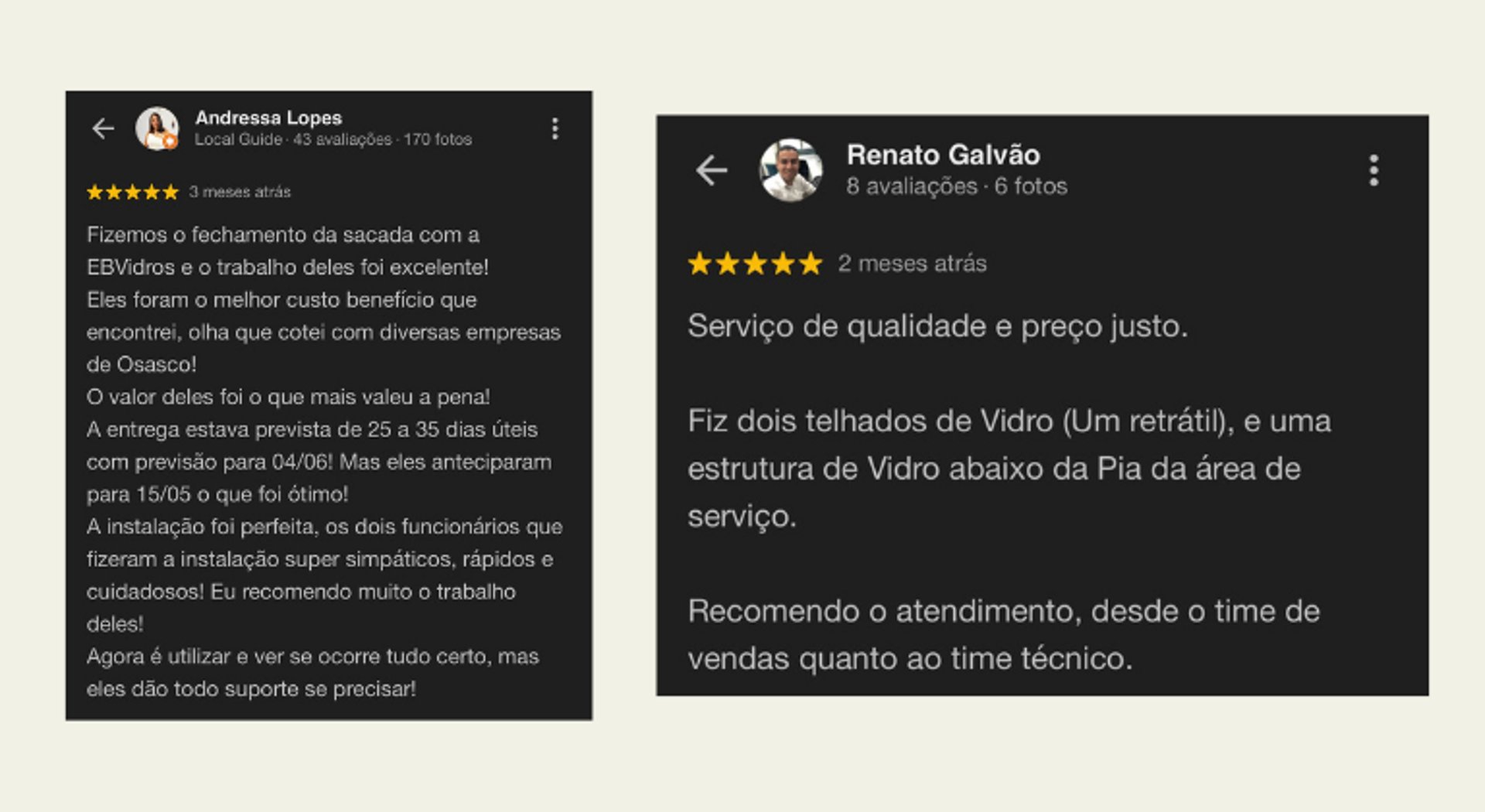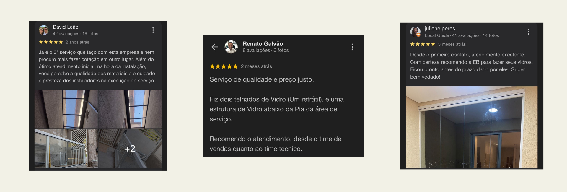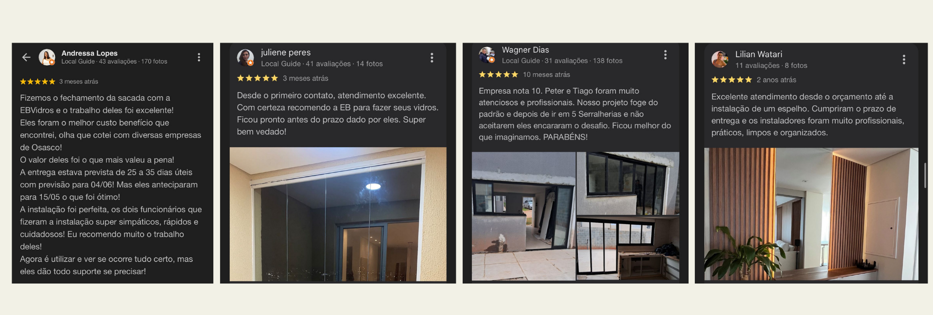 Há anos no mercado, a EB Vidros se consolidou em Osasco e região como referência em soluções em vidro. Trabalhamos com um atendimento próximo e personalizado, garantindo que cada cliente receba não apenas um produto, mas a tranquilidade de contar com uma empresa séria, comprometida e confiável.