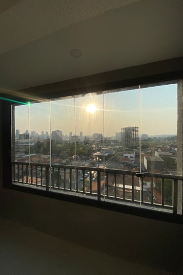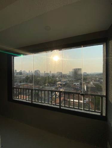 Fechamentos modernos em vidro que ampliam e valorizam ambientes, com isolamento e conforto.