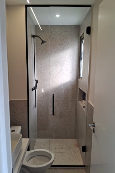 Box em vidro temperado com diferentes opções de acabamento, que unem praticidade, segurança e estilo para seu banheiro.