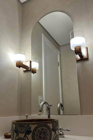 Espelhos decorativos, funcionais e com acabamento refinado. Ideais para banheiros, salas, academias e espaços comerciais.